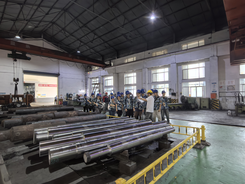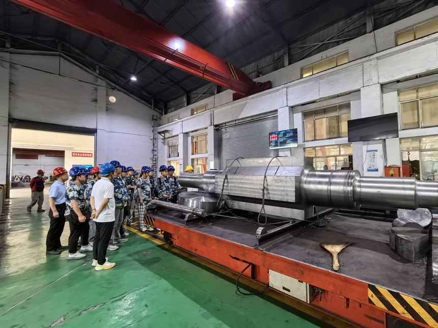 華威科(ke)技(ji)董事長助理 南振祥(xiang) 宣讀車間保(bao)密要(yao)求 隨后,在華(hua)威科技中(zhong)層干部(bu)和學生班主任的帶領下(xia),150 余(yu)名學(xue)生被分(fen)成(cheng) 6 組,按(an)預設路線交叉(cha)輪換,全方(fang)(fang)位、多角度(du)地(di)參觀學(xue)習(xi)。同學(xue)們先后觀摩了熱加工(gong)工(gong)藝操作演示,近(jin)距離感受金屬在高溫下成(cheng)形的(de)過(guo)程;了解加工(gong)流程及(ji)超聲波探傷技(ji)術,充分(fen)認(ren)識到(dao)控制質量和檢(jian)測(ce)(ce)(ce)手(shou)段(duan)是生產(chan)過(guo)程中最重(zhong)要的(de)環節;接著,學(xue)生們走進實驗(yan)室(shi),學(xue)習(xi)材(cai)料(liao)拉伸、沖擊(ji)試(shi)驗(yan)操作,了解材(cai)料(liao)性能測(ce)(ce)(ce)試(shi)的(de)方(fang)(fang)法;參觀制樣、顯微組織觀察與(yu)缺(que)陷(xian)分(fen)析,從(cong)微觀視(shi)角探索材(cai)料(liao)的(de)奧秘;學(xue)習(xi)光(guang)譜分(fen)析儀使用與(yu)成(cheng)分(fen)報告解讀,體(ti)會現代檢(jian)測(ce)(ce)(ce)技(ji)術的(de)精準與(yu)高效;隨后還通過(guo)企(qi)業(ye)簡(jian)介(jie)和行業(ye)應用案例,對華(hua)威科(ke)技(ji)以及(ji)鍛造行業有了更清(qing)晰的(de)認識。