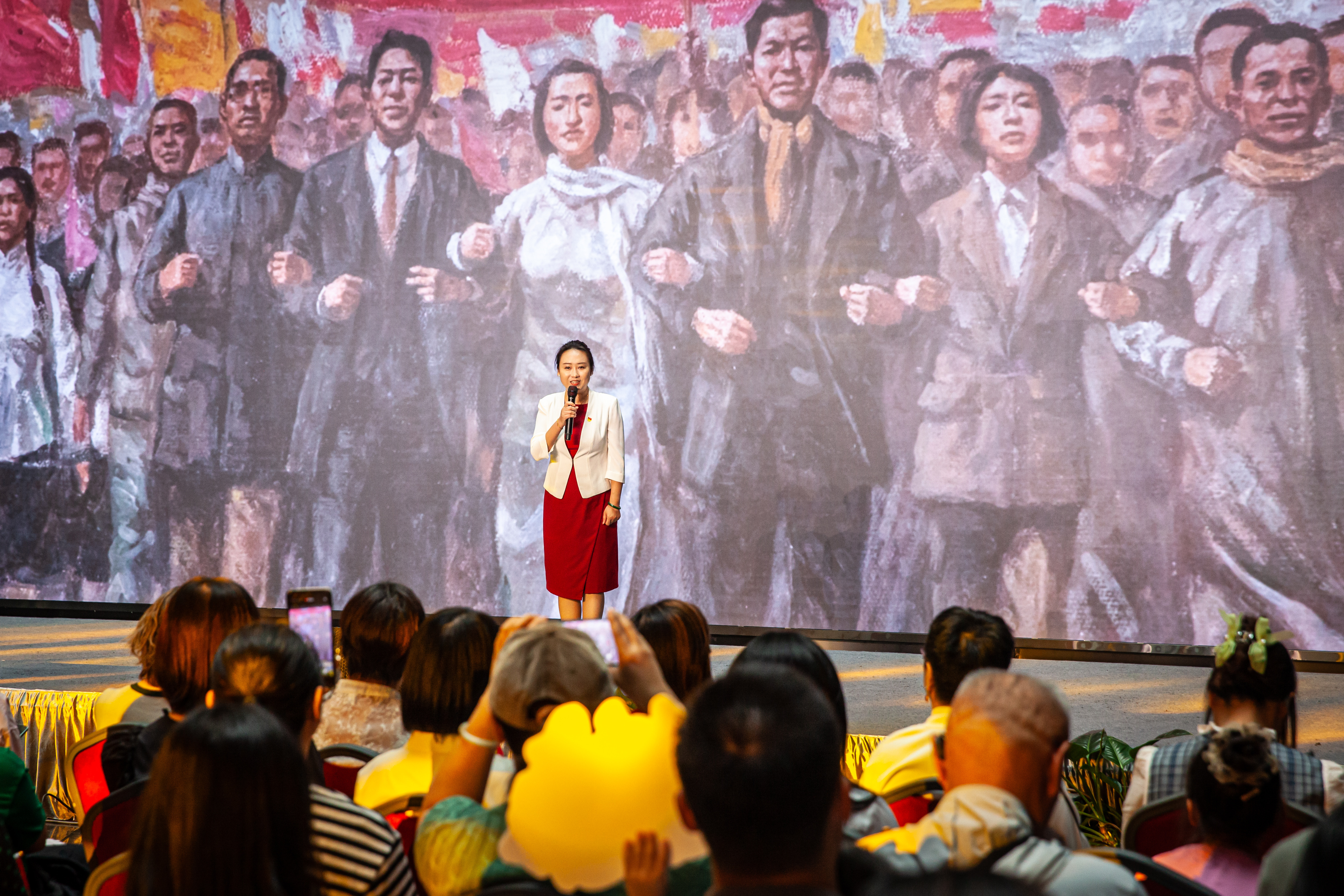故事会尾声,后生抒怀女高音李妍憨厚大气无垠的演唱焚烧全场,现场不雅众异曲同工地加入到赞许《我和我的故国》中,激越的歌声在博物馆内震动,将现场烦恼推向上涨。